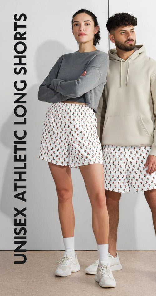 beYantra | Unisex Athletic Long Shorts | White with Tiny Flowers