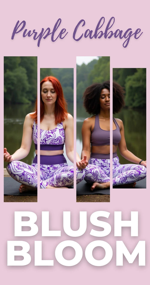 Blush Bloom Purple Cabbage Elegance Leggings designed to keep you moving effortlessly and gracefully through every pose. The flowing, nature-inspired design adds a touch of organic elegance, empowering you to move with harmony and confidence.