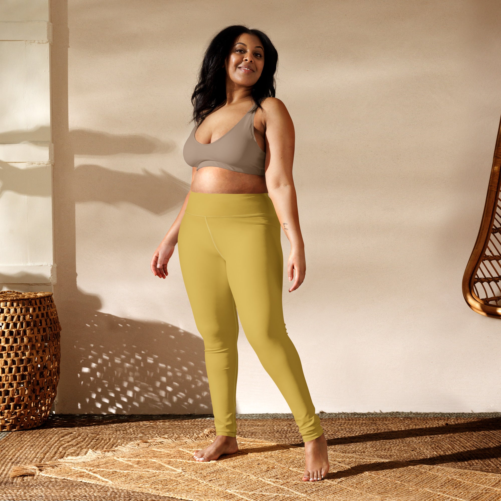 Olive Yellow Essence | Solid High-Waisted Leggings | Timeless Serenity